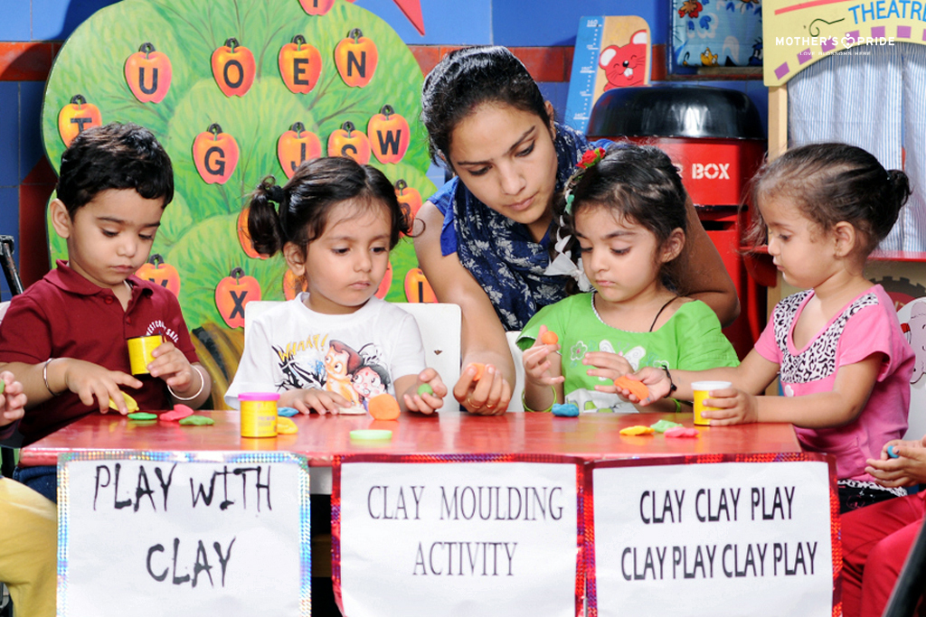With clay, children learn how to mould and create things around them, understand colours and shapes of the objects and give life to their imagination, using something that they can touch, see and feel. To develop fine motor, imaginative and creative skills in kids, we conduct regular clay molding sessions at Mother’s Pride. Children are encouraged to play with clay and create shapes and objects. These sessions also enhances the hand-eye coordination among children.