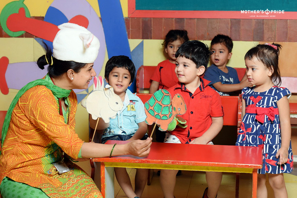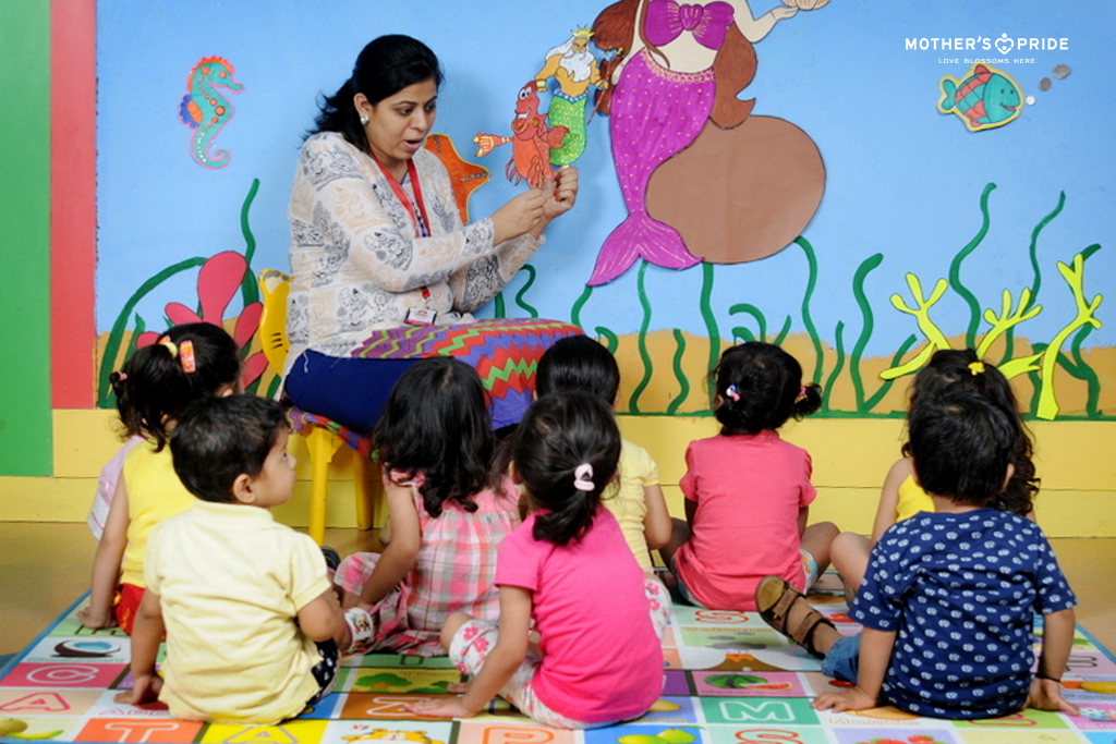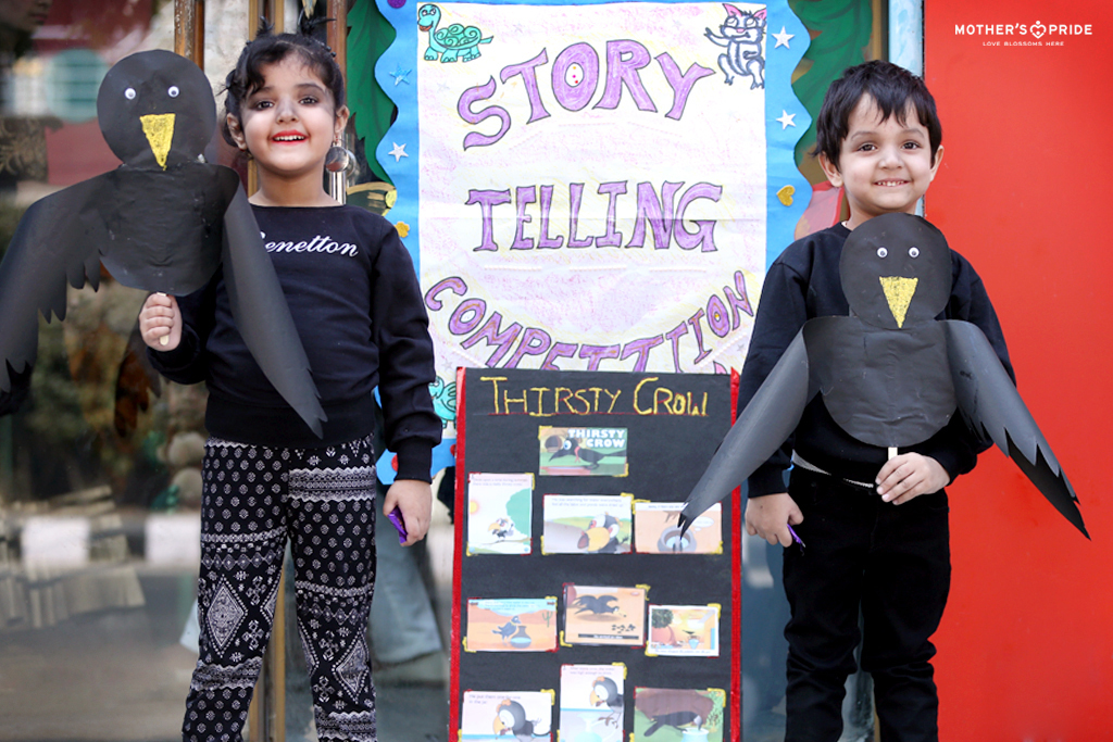 Children have an innate love for stories. They have the power to create magic and a sense of adventure in the classroom. Stories are a great way to teach children about life, about ourselves and others. At Mother’s Pride, storytelling is a unique way for children to develop an understanding about the world around them. It creates interest in children as the character comes to live in front of them and captures their attention and imagination. Children learn about good social habits, traffic rules, sharing, etc. through stories. They also develop language and imaginative skills and as they narrate and listen to stories.
