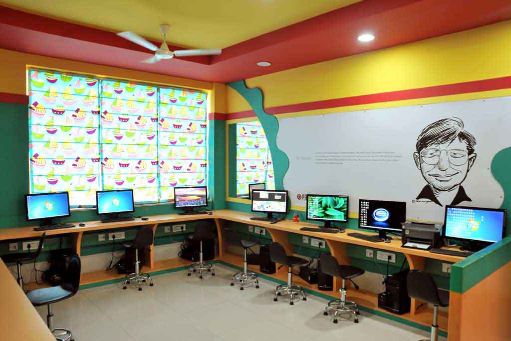 Little is known about the effect that computer technology can have over a young mind. The children of this 21st century are simply ‘born for it’! The computer lab equips the Prideens with the latest technology and learn about how to use the computer by clicking, dragging and revising diverse concepts. The student to computer ratio is 1:10, while the LCD monitors are easier to the eyes, generate less heat and consume less power thereby keeping the atmosphere of the lab comfortable for the children.