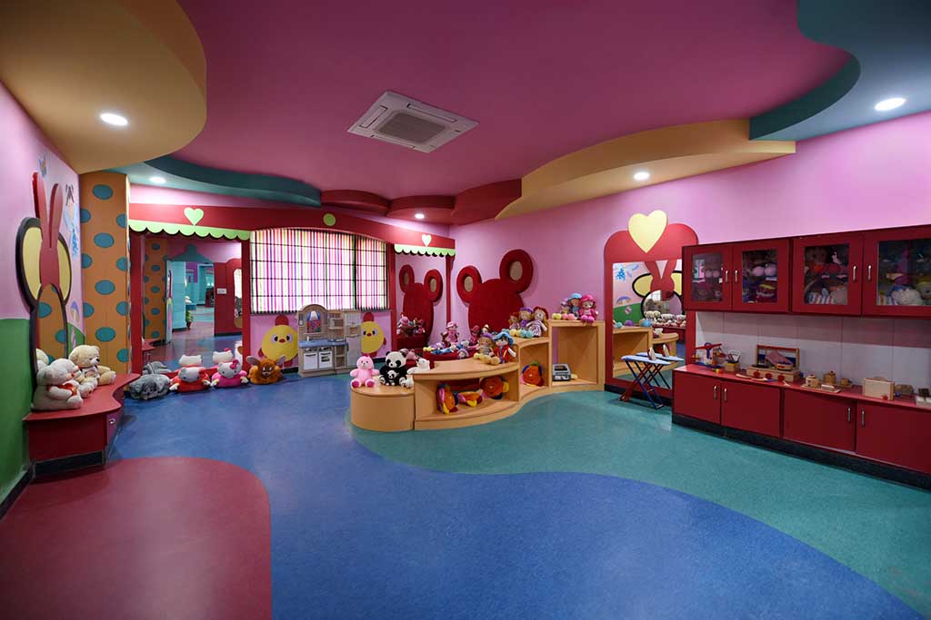 It is believed that the infrastructure design of the school has a major influence on the students’ attitude, behaviour and learning. The school infrastructure provides an environment that is calm, engaging and responsive to each child at all stages of his or her development. The building is extremely spacious and colourful, offering an interactive learning environment that would help them to develop a relationship with their most loved preschool. The furniture has been curated keeping the safety of children in mind. The architecture is such that it attracts children towards the school, promotes activities and increases peer learning opportunities by making the whole campus a child friendly one.