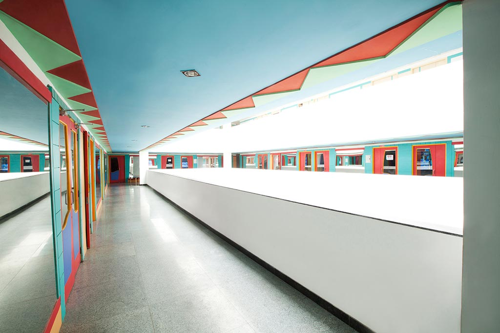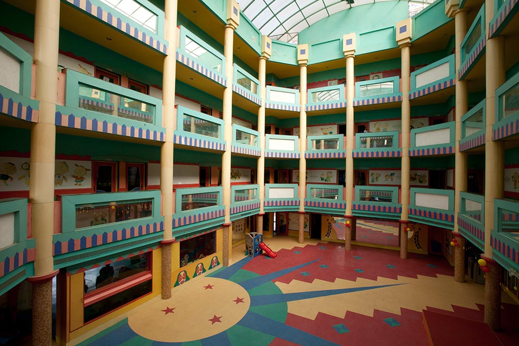 - Sensory stimulation harmony through use of colourful patterns on walls and floors