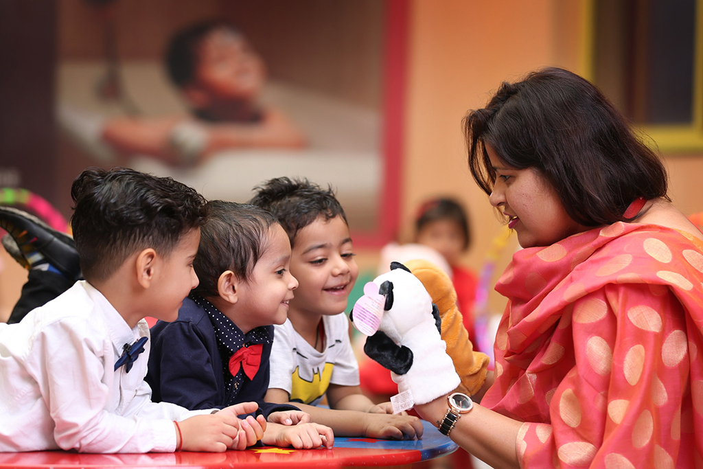 Children love to use their imaginations to move beyond the bounds of reality. They can turn a stick into a magic wand, a sock into a puppet and themselves into superheroes. Puppets are toys that truly fascinate children; they connect as friends. It’s also a great way to draw the attention and imagination of preschoolers and while offering amazing benefits that aid a child’s development. By organising Puppet Plays, we strive to bring stories to life, and inculcate various concepts like good habits, sharing, caring, etc. It also helps the kids develop vocabulary and improve communication & listening skills.