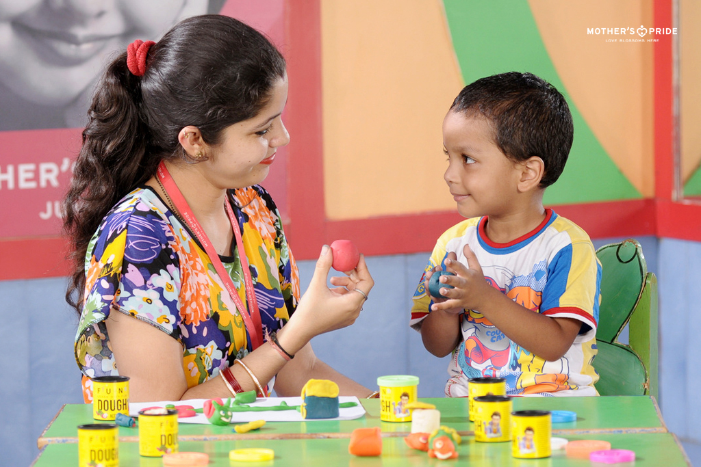With clay, children learn how to mould and create things around them, understand colours and shapes of the objects and give life to their imagination, using something that they can touch, see and feel. To develop fine motor, imaginative and creative skills in kids, we conduct regular clay molding sessions at Mother’s Pride. Children are encouraged to play with clay and create shapes and objects. These sessions also enhances the hand-eye coordination among children.