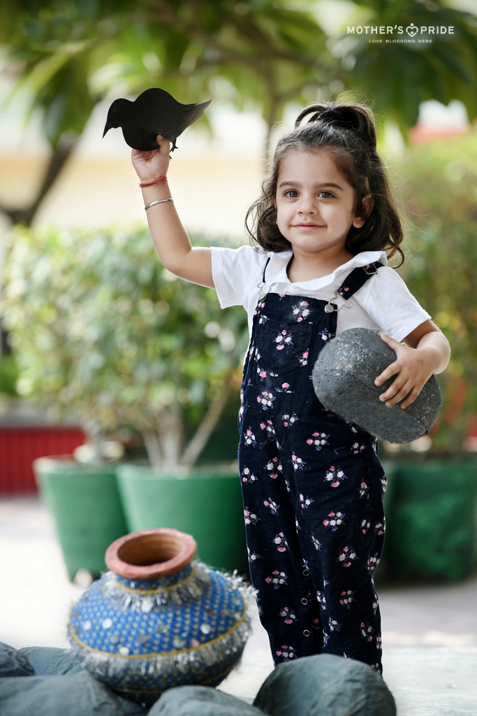 Children have an innate love for stories. They have the power to create magic and a sense of adventure in the classroom. Stories are a great way to teach children about life. At Mother’s Pride, storytelling is a unique way for children to develop an understanding about the world around them. It creates interest among them as the character comes to life in front of them and captures their attention & imagination. Children learn about topics like good social habits, traffic rules and sharing through stories. They also develop language and imaginary skills as they narrate and listen to stories.