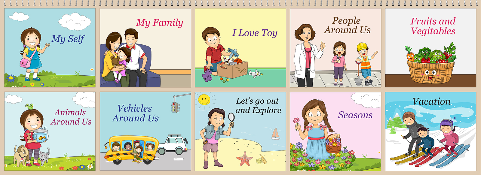 Theme ‘Vacation’ is the perfect way to teach the children about independence. They are introduced to different destinations, modes of transports via land, water or air and necessities that are associated with travelling such as suitcases, clothes,etc. They share their own experiences of their trips with families, solve riddles and enhance their observation skills through ‘spot the difference’ activities. This theme indeed triggers the growth of children across all domains of development.